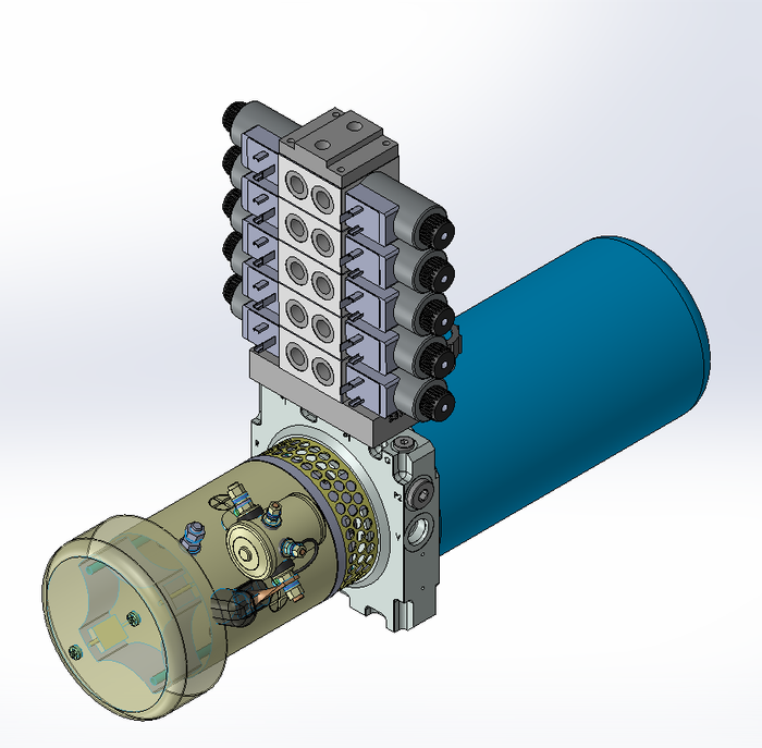 THIS HYDRAULIC POWER UNIT OPERATES WITH A 2000 W FAN ASSISTED MOTOR AT 24 V DC. DESIGNED FOR 250 BAR AND 4.0 L/MIN. INCLUDES 2.8 L HORIZONTAL TANK AND PMC 30 VALVE INTERFACE. 5 VALVES. BRAND: PRIMEHYD.