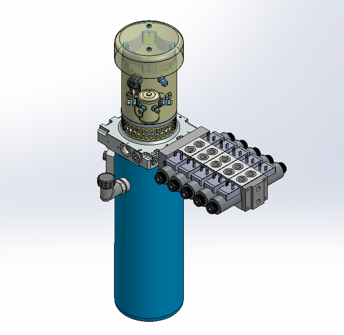 THIS HYDRAULIC POWER UNIT OPERATES WITH A 2000 W FAN ASSISTED MOTOR AT 24 V DC. DESIGNED FOR 250 BAR AND 4.0 L/MIN. INCLUDES 4.2 L VERTICAL TANK AND PMC 30 VALVE INTERFACE. 5 VALVES. BRAND: PRIMEHYD.
