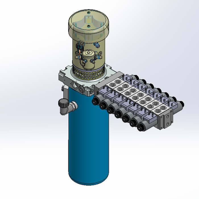 THIS HYDRAULIC POWER UNIT OPERATES WITH A 2000 W FAN ASSISTED MOTOR AT 24 V DC. DESIGNED FOR 250 BAR AND 4.0 L/MIN. INCLUDES 4.2 L VERTICAL TANK AND PMC 30 VALVE INTERFACE. 7 VALVES. BRAND: PRIMEHYD.