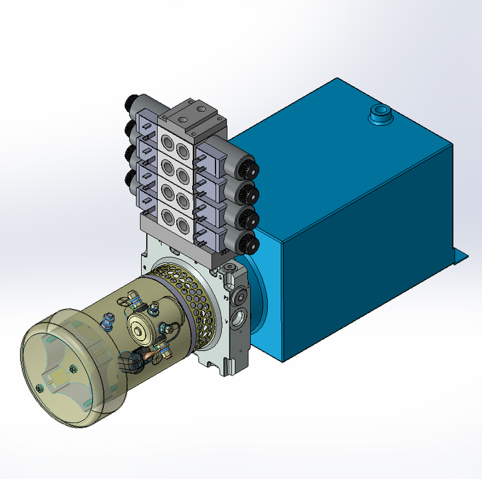 THIS HYDRAULIC POWER UNIT OPERATES WITH A 2000 W FAN ASSISTED MOTOR AT 24 V DC. DESIGNED FOR 250 BAR AND 4.0 L/MIN. INCLUDES 10 L HORIZONTAL TANK AND PMC 30 VALVE INTERFACE. 4 VALVES. BRAND: PRIMEHYD.