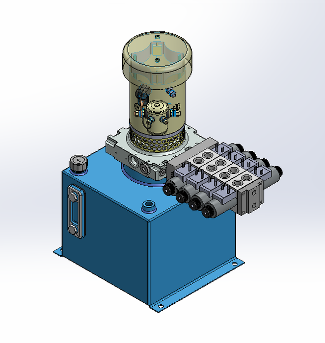 THIS HYDRAULIC POWER UNIT OPERATES WITH A 2000 W FAN ASSISTED MOTOR AT 24 V DC. DESIGNED FOR 250 BAR AND 4.0 L/MIN. INCLUDES 12 L VERTICAL TANK AND PMC 30 VALVE INTERFACE. 4 VALVES. BRAND: PRIMEHYD.
