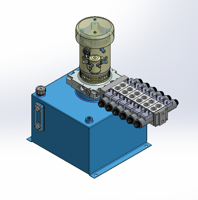 THIS HYDRAULIC POWER UNIT OPERATES WITH A 2000 W FAN ASSISTED MOTOR AT 24 V DC. DESIGNED FOR 250 BAR AND 4.0 L/MIN. INCLUDES 18 L VERTICAL TANK AND PMC 30 VALVE INTERFACE. 6 VALVES. BRAND: PRIMEHYD.
