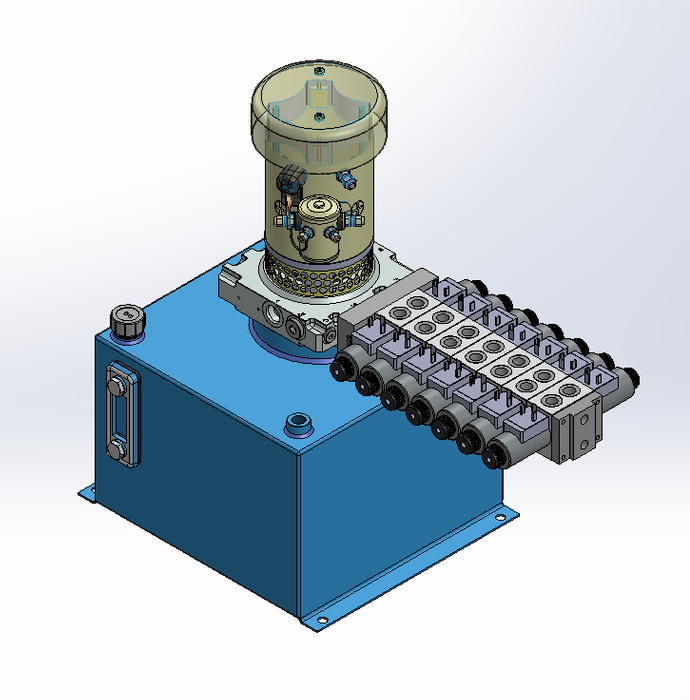 THIS HYDRAULIC POWER UNIT OPERATES WITH A 2000 W FAN ASSISTED MOTOR AT 24 V DC. DESIGNED FOR 250 BAR AND 4.0 L/MIN. INCLUDES 18 L VERTICAL TANK AND PMC 30 VALVE INTERFACE. 7 VALVES. BRAND: PRIMEHYD.