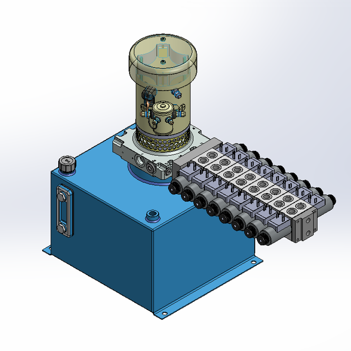 THIS HYDRAULIC POWER UNIT OPERATES WITH A 2000 W FAN ASSISTED MOTOR AT 24 V DC. DESIGNED FOR 250 BAR AND 4.0 L/MIN. INCLUDES 18 L VERTICAL TANK AND PMC 30 VALVE INTERFACE. 8 VALVES. BRAND: PRIMEHYD.