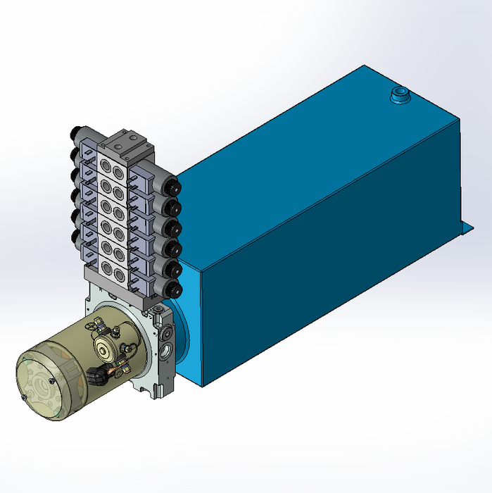 THIS HYDRAULIC POWER UNIT OPERATES WITH A 1500 W AIR COOLED MOTOR AT 12 V DC. DESIGNED FOR 250 BAR AND 4.0 L/MIN. INCLUDES 20 L HORIZONTAL TANK AND PMC 30 VALVE INTERFACE. 6 VALVES. BRAND: PRIMEHYD.
