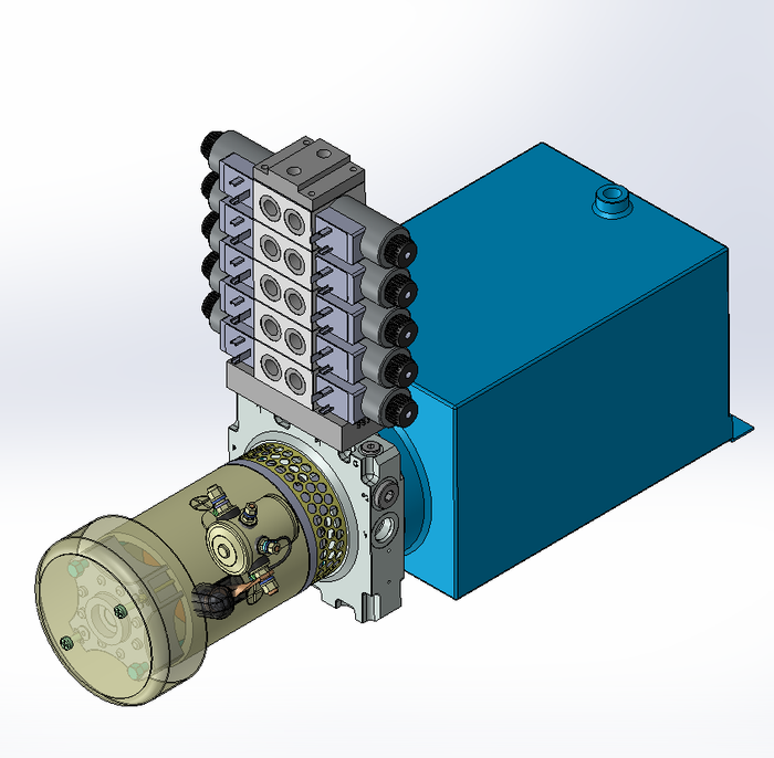THIS HYDRAULIC POWER UNIT OPERATES WITH A 1500 W FAN ASSISTED MOTOR AT 12 V DC. DESIGNED FOR 250 BAR AND 4.0 L/MIN. INCLUDES 10 L HORIZONTAL TANK AND PMC 30 VALVE INTERFACE. 5 VALVES. BRAND: PRIMEHYD.