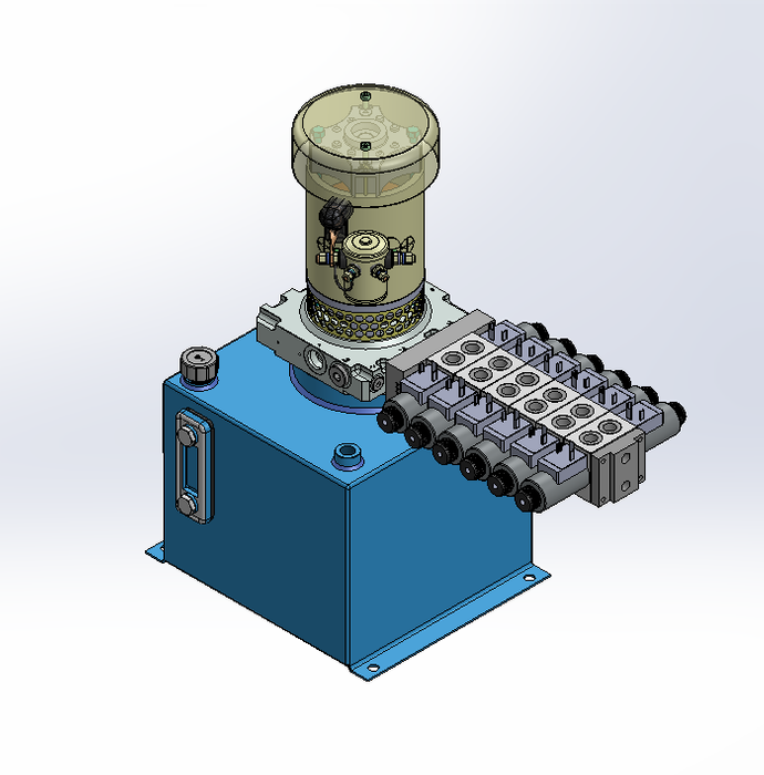 THIS HYDRAULIC POWER UNIT OPERATES WITH A 1500 W FAN ASSISTED MOTOR AT 12 V DC. DESIGNED FOR 250 BAR AND 4.0 L/MIN. INCLUDES 12 L VERTICAL TANK AND PMC 30 VALVE INTERFACE. 6 VALVES. BRAND: PRIMEHYD.