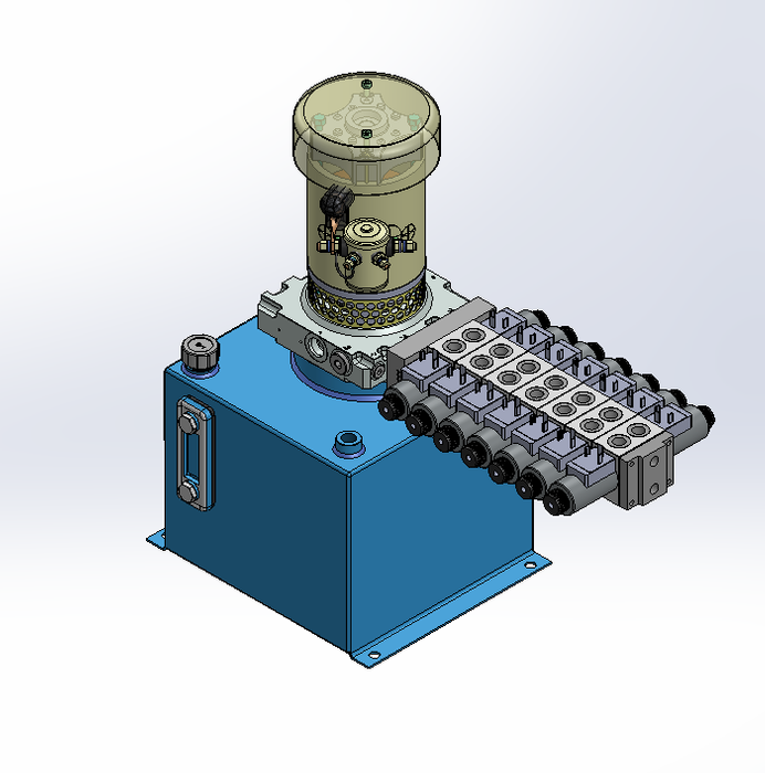 THIS HYDRAULIC POWER UNIT OPERATES WITH A 1500 W FAN ASSISTED MOTOR AT 12 V DC. DESIGNED FOR 250 BAR AND 4.0 L/MIN. INCLUDES 12 L VERTICAL TANK AND PMC 30 VALVE INTERFACE. 7 VALVES. BRAND: PRIMEHYD.
