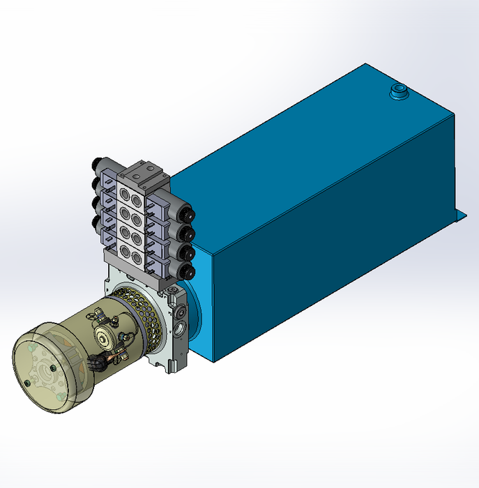 THIS HYDRAULIC POWER UNIT OPERATES WITH A 1500 W FAN ASSISTED MOTOR AT 12 V DC. DESIGNED FOR 250 BAR AND 4.0 L/MIN. INCLUDES 20 L HORIZONTAL TANK AND PMC 30 VALVE INTERFACE. 4 VALVES. BRAND: PRIMEHYD.