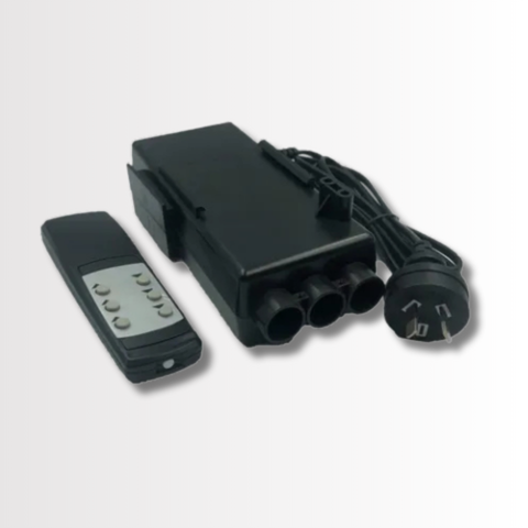 THIS CONTROLLER KIT FEATURES WIRELESS REMOTE CONTROLLER KIT 6 BUTTON HAND HELD REMOTE WITH 110–240 AC INPUT AND 12 VDC OUTPUT FOR OPERATING ELECTRIC LINEAR ACTUATORS. BRAND: PRIMEHYD.