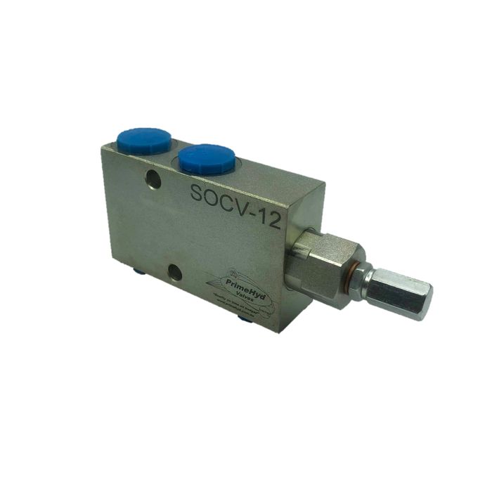 SOCV-12 • SINGLE INLINE OVER CENTRE VALVE • 1/2" BSPP X 2 AND M14×1.5 X 2 • 350 BAR • 60 LPM • PRIMEHYD