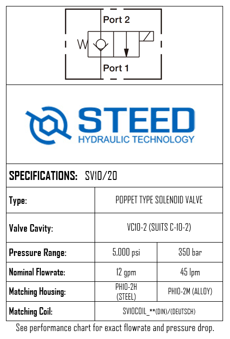 SV10/20 • SOLENOID VALVE ON/OFF 2 WAYS 2 POSITIONS • SAE-10-2 • 350 BAR • 45.0 LPM • STEED