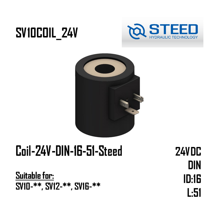 SV10COIL_24V • 24V • DIN • ID 16 MM • L : 51 MM • STEED