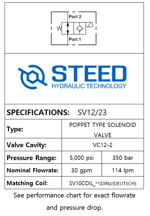 SV12/23 • SOLENOID VALVE ON/OFF 2-WAY 2-POSITION • SAE-12-2 • 350 BAR • 114 LPM • STEED