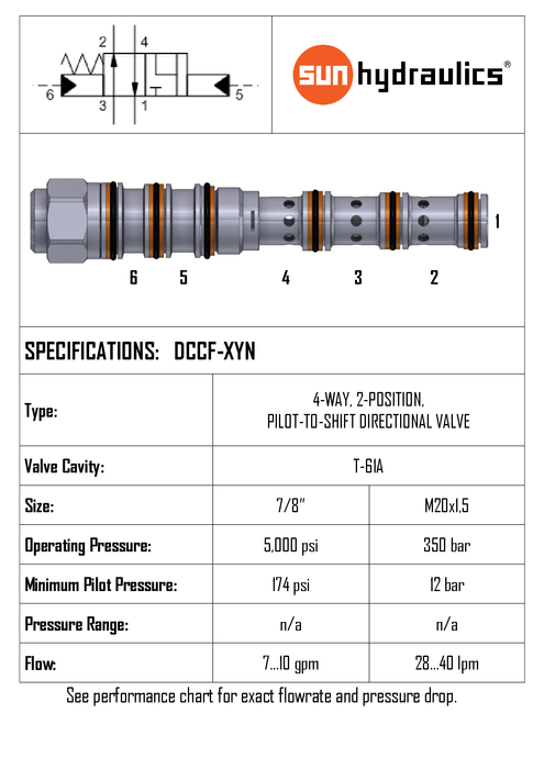 DCCF-XYN • PILOT DIRECTIONAL CONTROL VALVE 4-WAY 2-POSITION PILOT TO SHIFT TYPE • T-61A • 350 BAR • 40 LPM (FLOW RANGE 28–40 LPM) • SUN