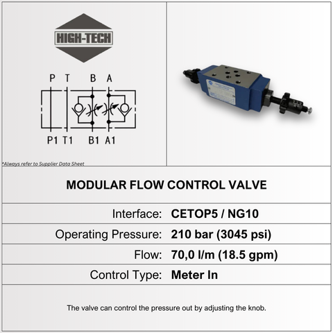 THROTTLE CHECK VALVE MODULE TYPE W INLET, CETOP 03 (NG6), MAX PRESSURE 210 BAR, FLOW 60 L/MIN, PROVIDES METER-IN CONTROL WITH CHECK FUNCTION, BRAND: PRIMEHYD