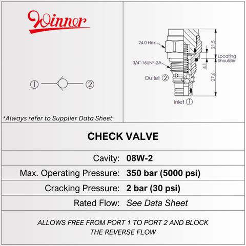 CV08W2220N-2 • CHECK VALVE • 2.0 BAR • C-08-2 • 350 BAR • 30 LPM • WINNER