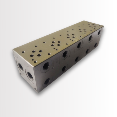 HYDRAULIC MANIFOLD PARALLEL, SIDE PORTED BSPP WITH SUN CAVITY T10-A, CETOP 3, 5 STATIONS, STEEL, NICKEL PLATED, MAX WORKING PRESSURE 350 BAR, PORT SIZE: P&T 1/2" BSPP, A&B 3/8" BSPP, G 1/4" BSPP